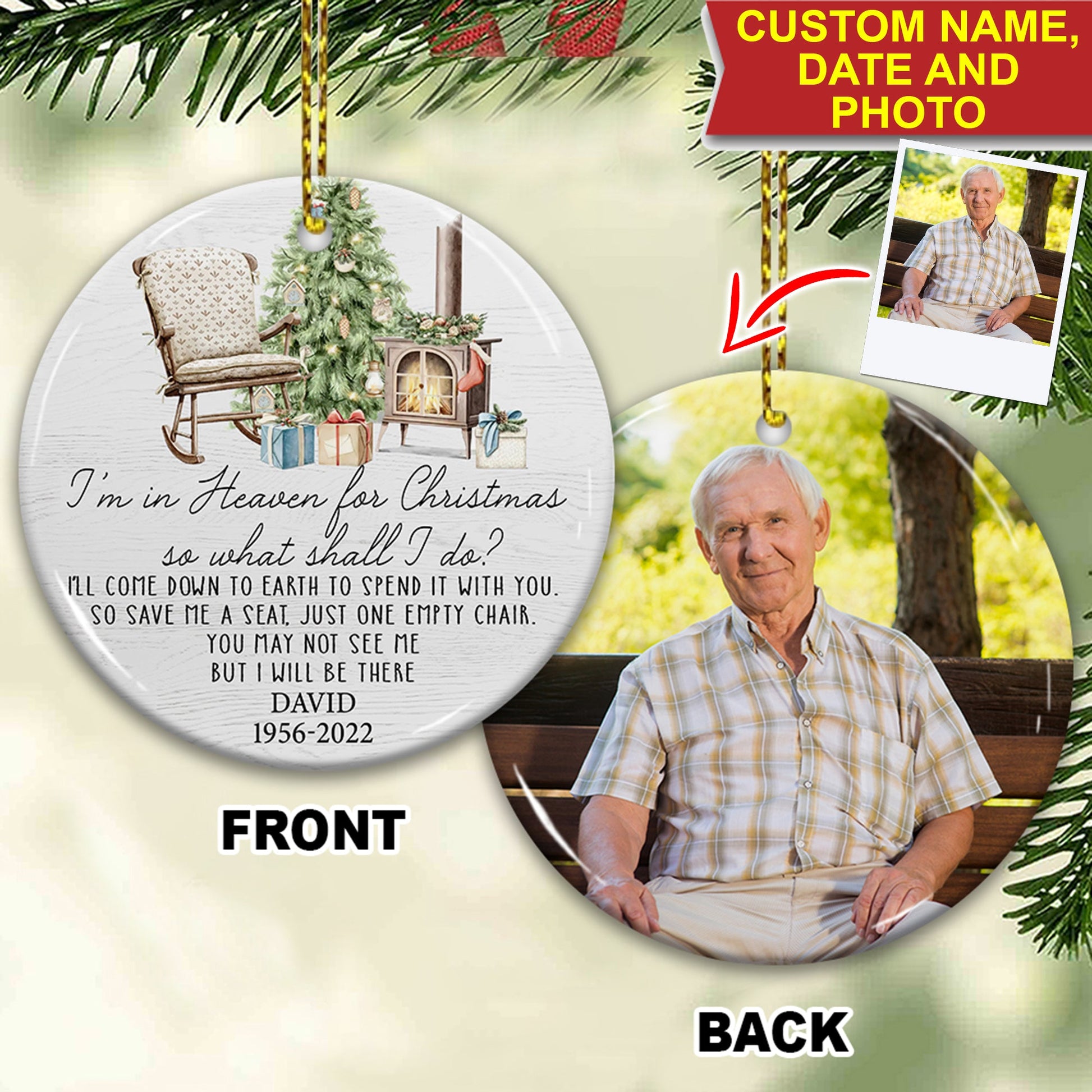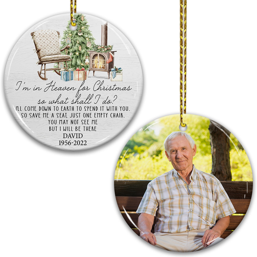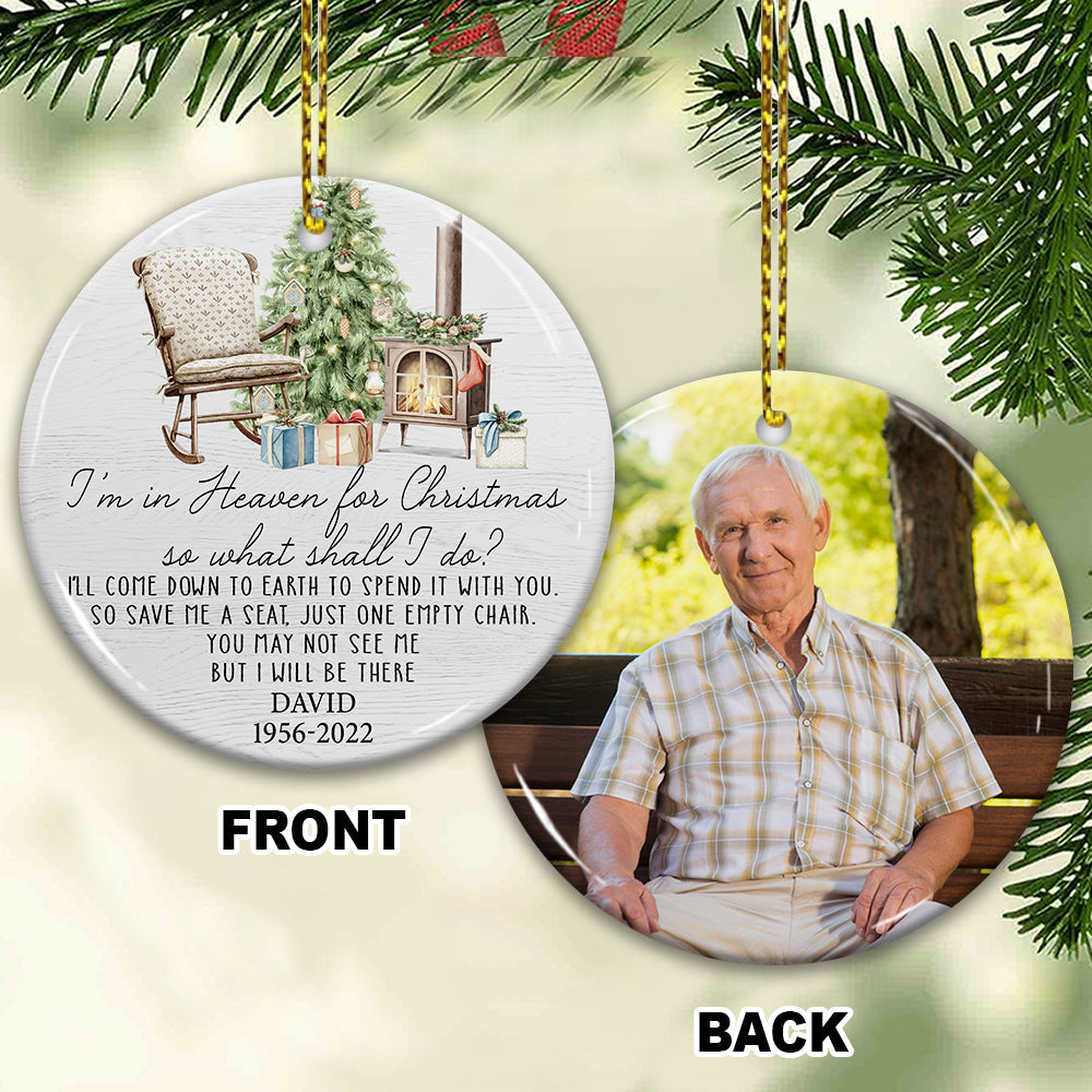 I Am In Heaven For Christmas So What Shall I Do - Custom Photo And Name- Personalized 2 Sides Ceramic Ornament - Gift For Family, Memorial Gift