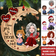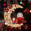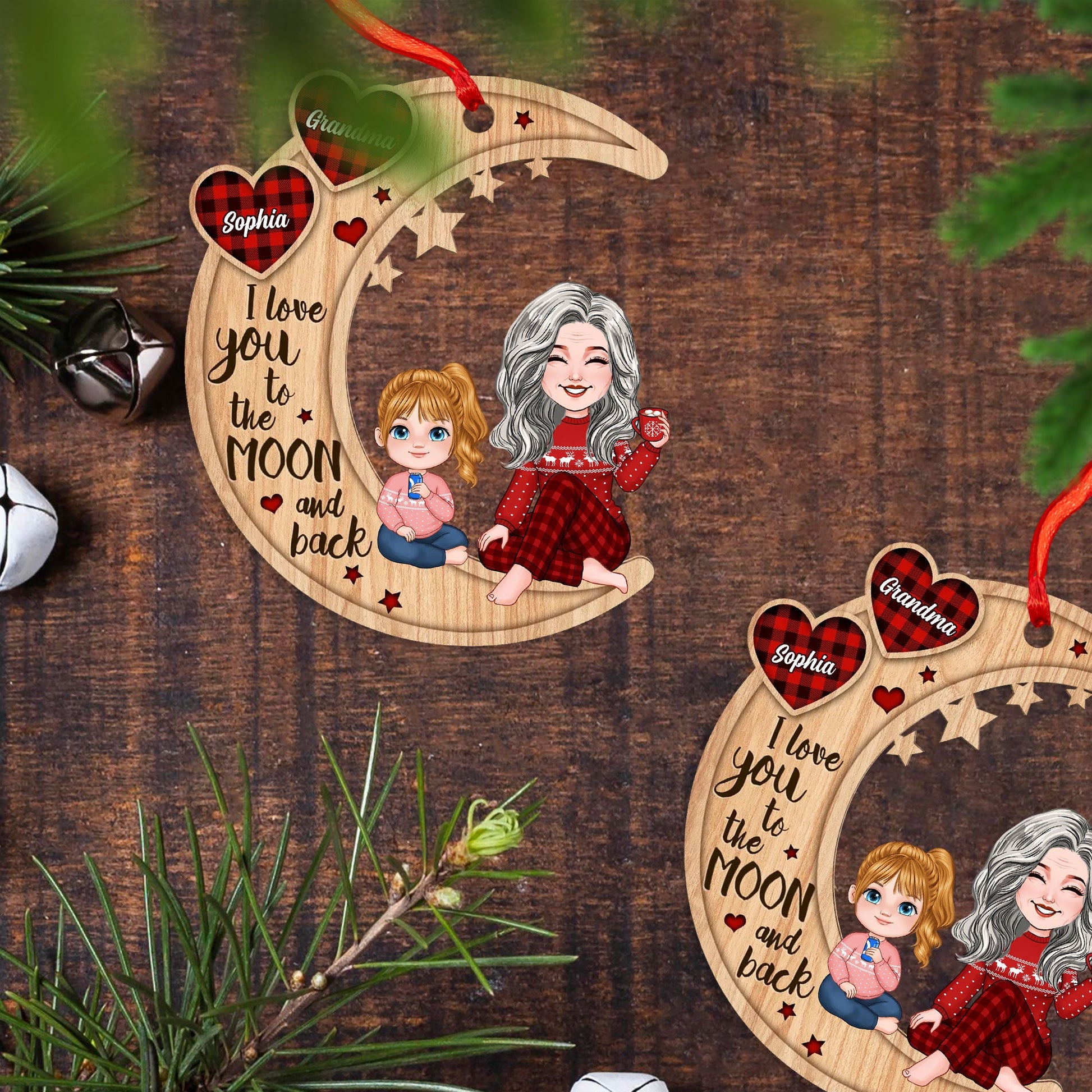 Cute Grandma & Grandkid Checkered Pattern Heart Love To The Moon - Gift For Granddaughter Grandson Personalized 2-Layered Wooden Ornament