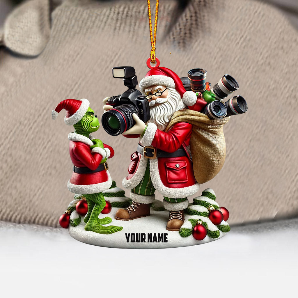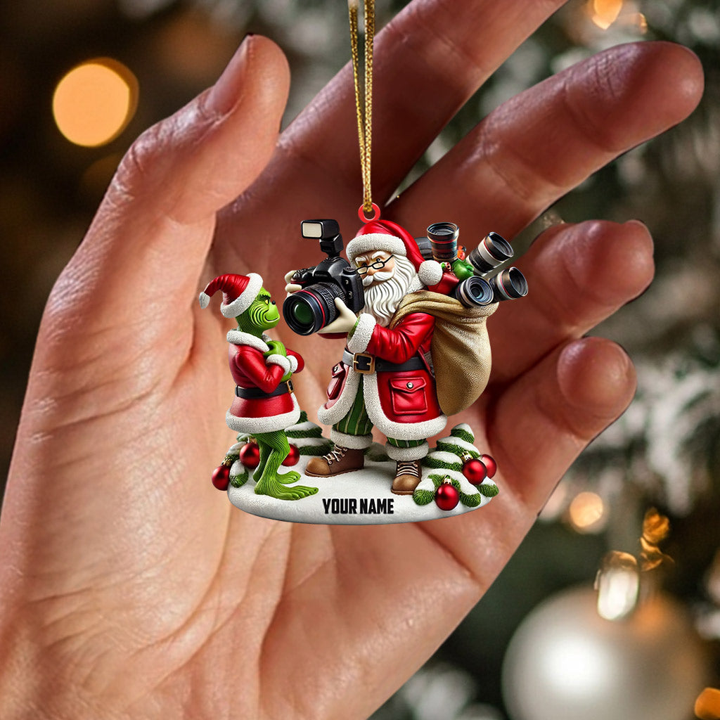 Santa And ELF Photographer Home Decor Christmas Ornament, Personalized Ornament