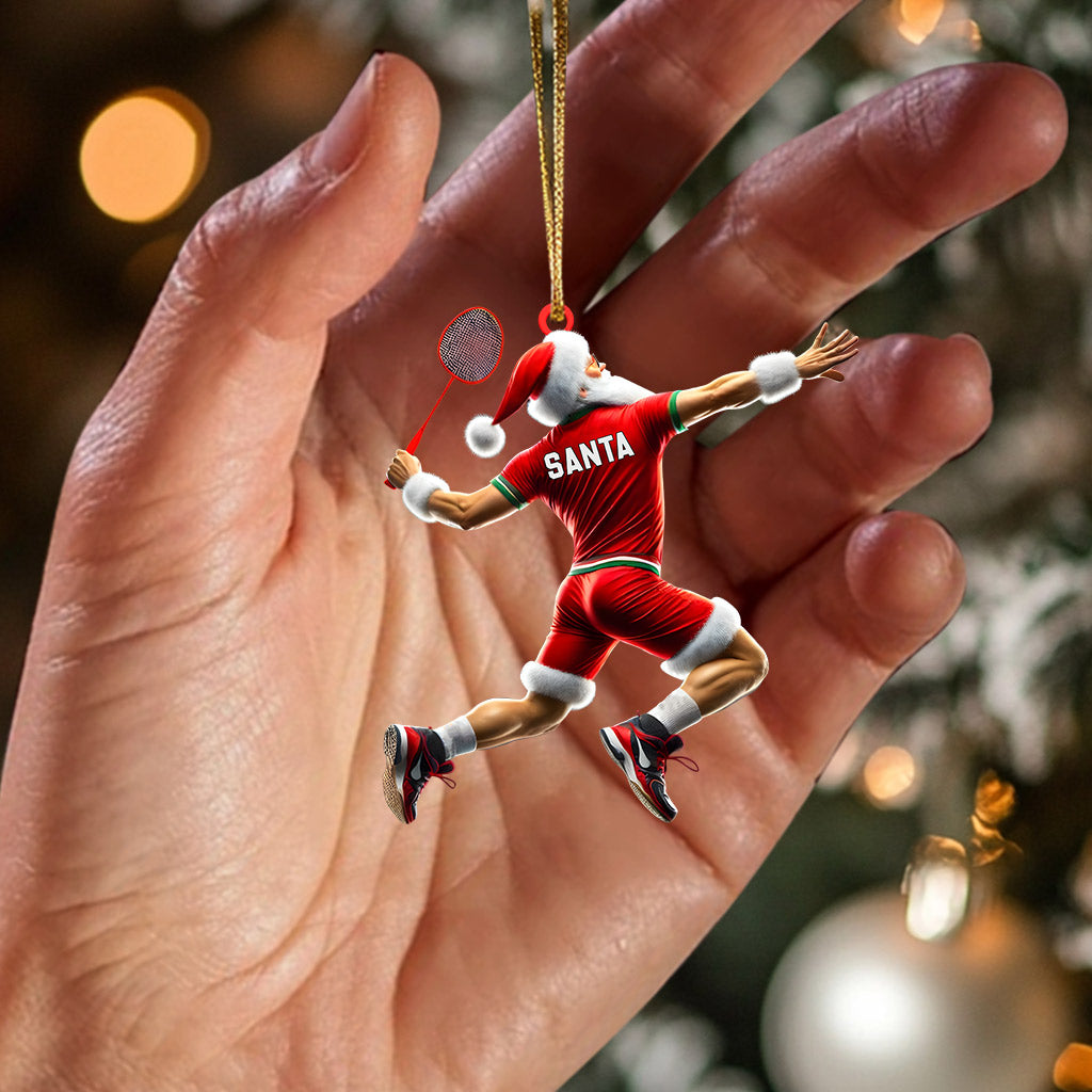 Santa Badminton Christmas Ornament, Personalized Ornament