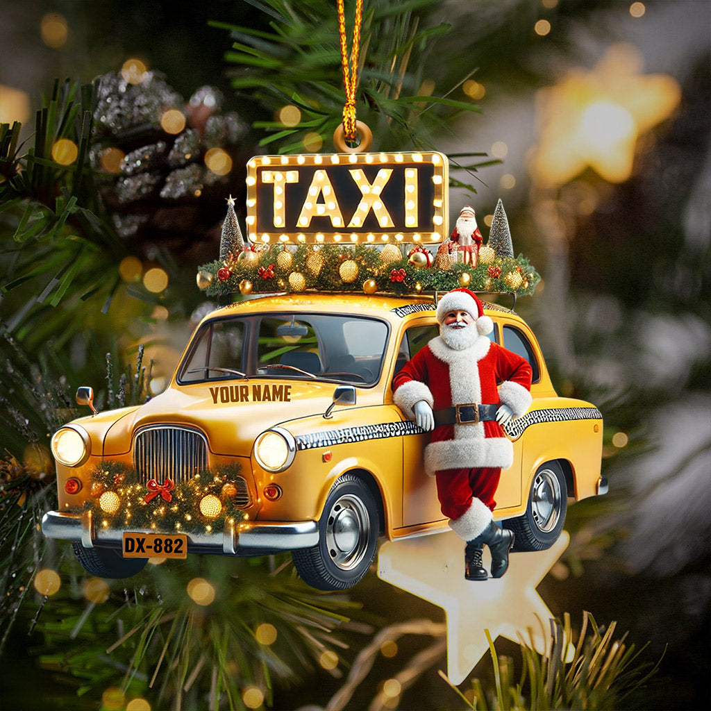 Santa Taxi Christmas Ornament, Personalized Ornament