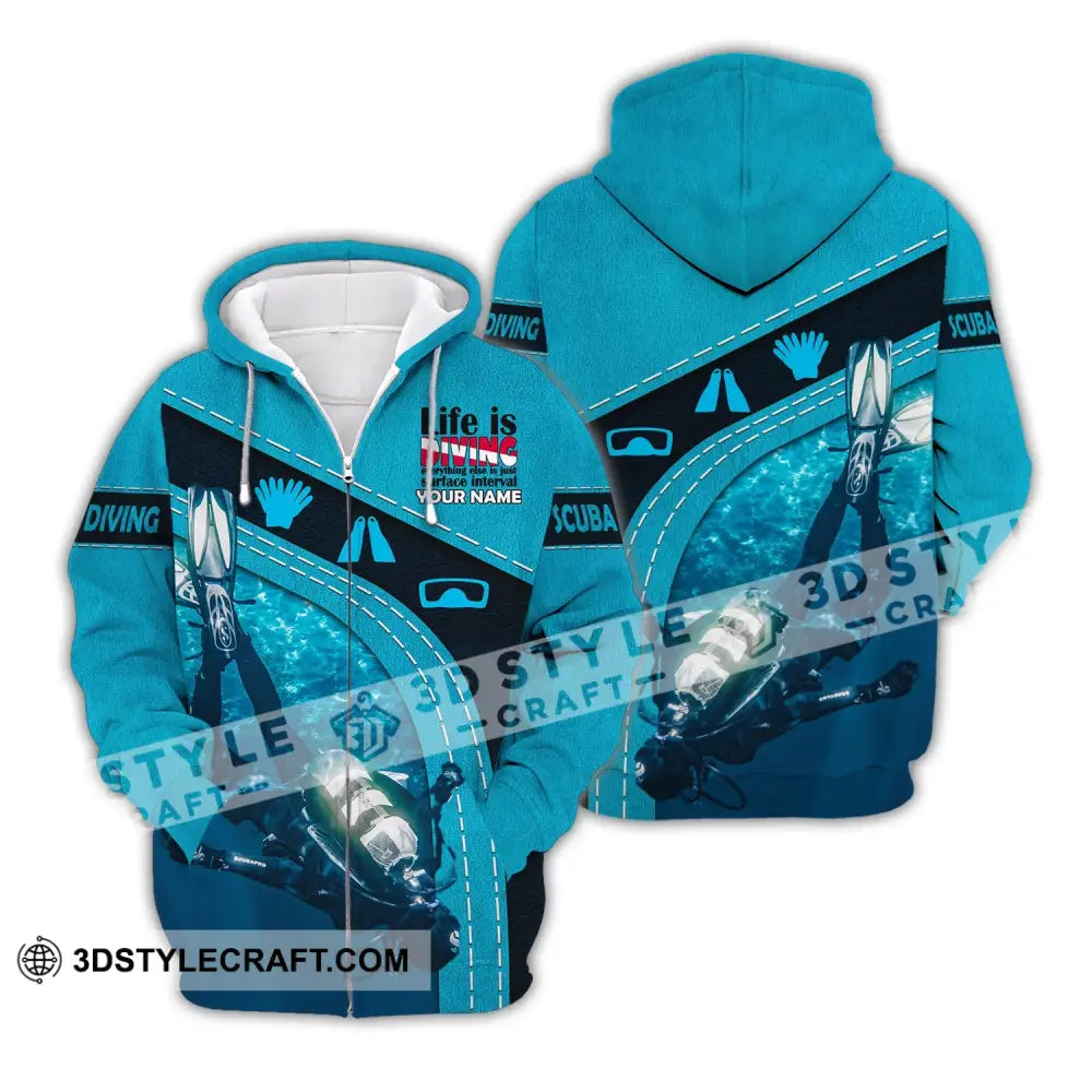 Unisex Shirt - Custom Diver Name T-Shirt - Scuba Diver, Life Is Diving - Personalized Shirt